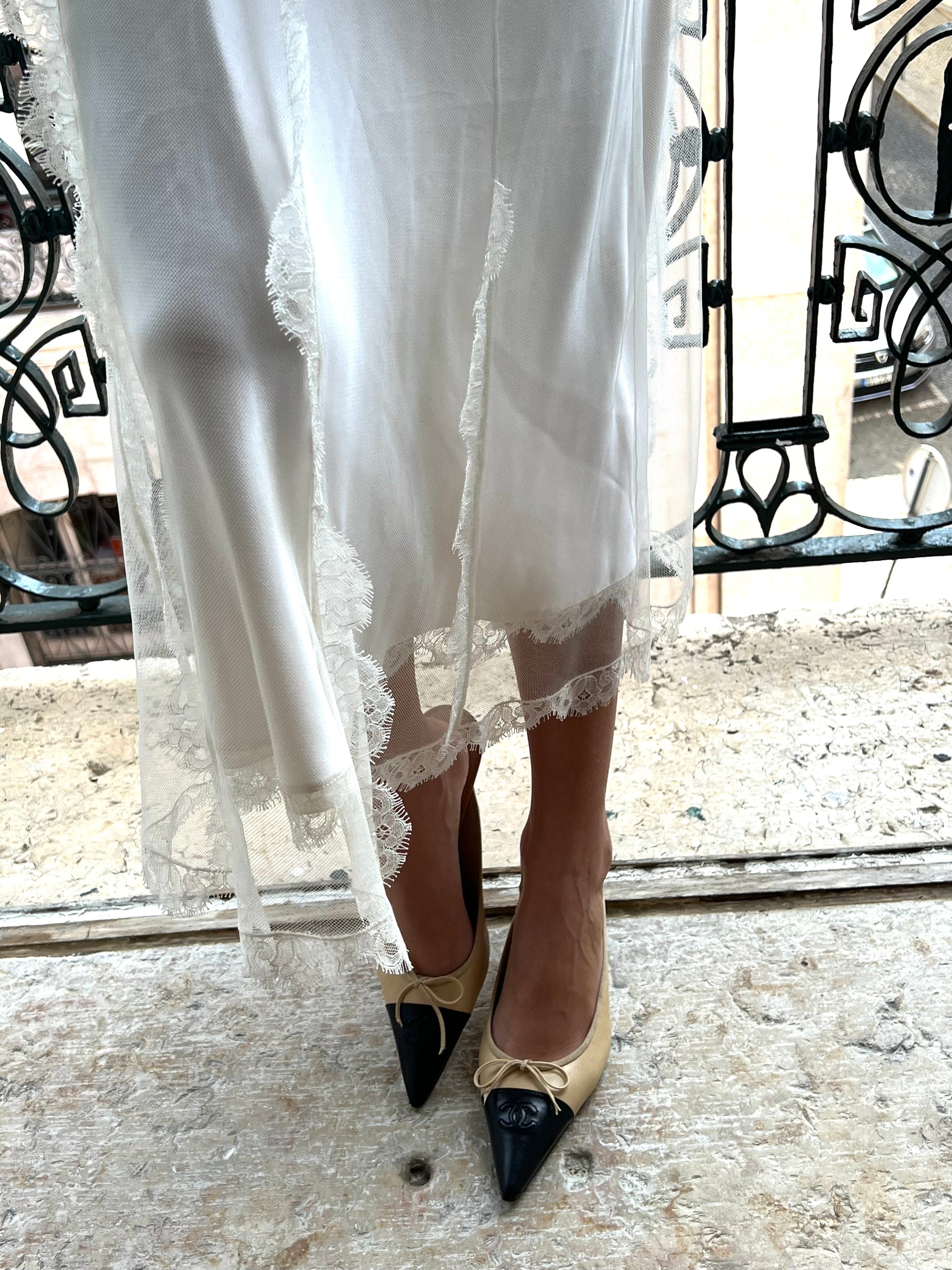 Vintage Chanel CC Two-Toned Beige & Black Mules