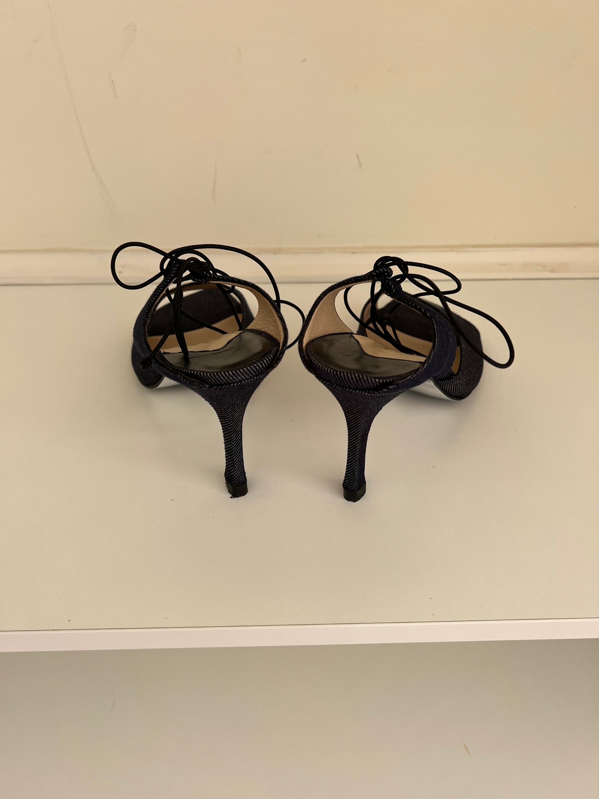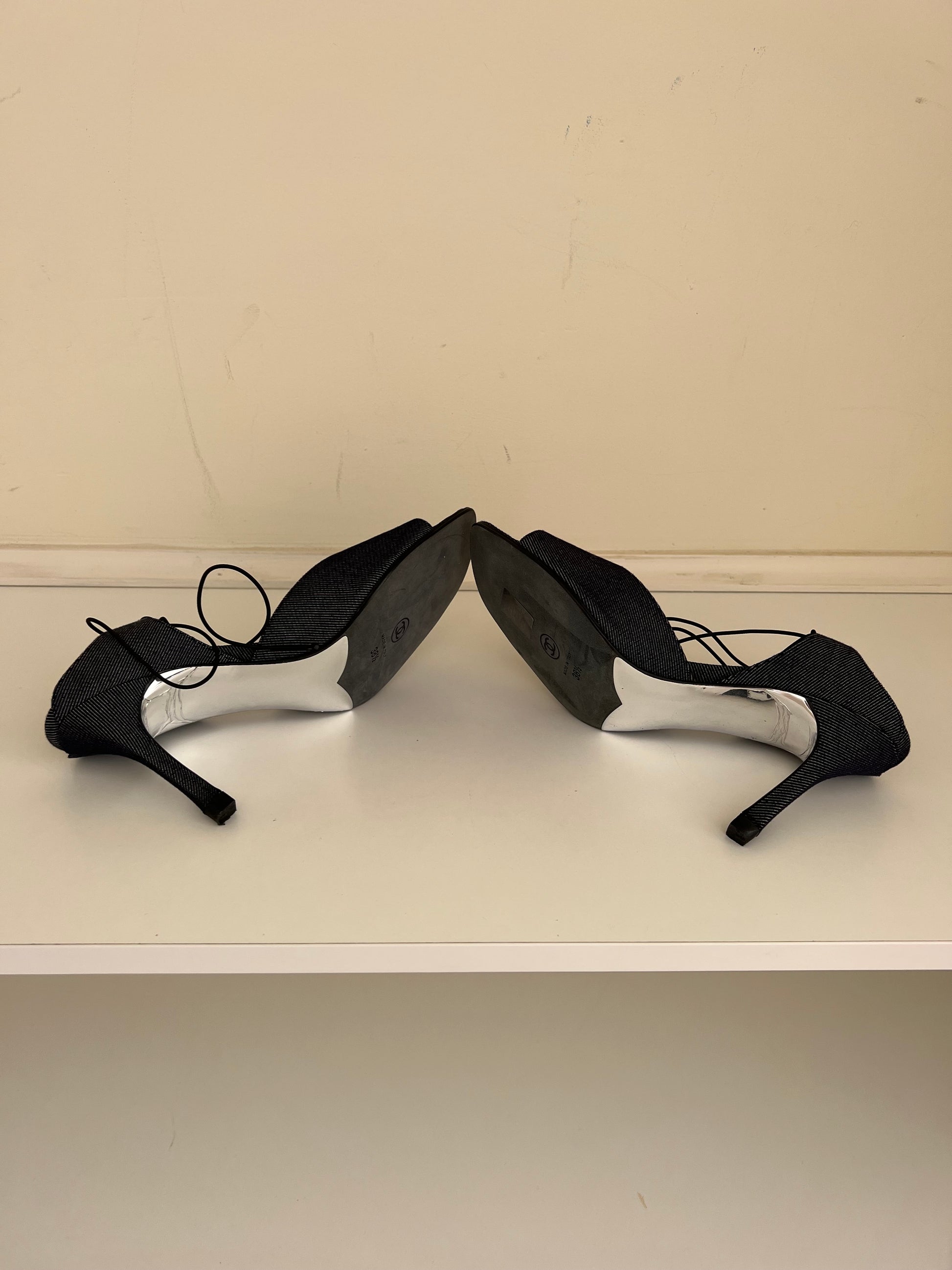 Vintage Chanel Denim Wrap Around Sandal Heels